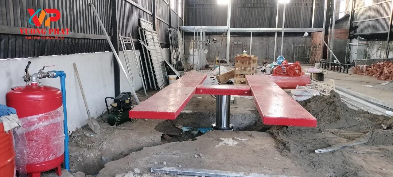 Cố định bằng bê tông và xi măng và cuối cùng là lắp đặt mặt bàn nâng chúng ta thi công chìm bằng mặt sàn nền, đảm bảo các yếu tố về thẩm mỹ và tính mang chuyên nghiệp.